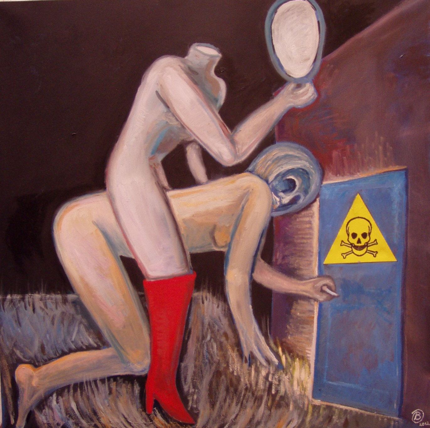 Siamo davvero al sicuro nel dolce nascondiglio della realtà in cui ci abitiamo? Forse l’opportunità che ci è data di superare la superficie ordinata per accedere al buio che abbaglia non va sprecata! Cavalcate i sogni fino alla soglia!, pascolate innocenti dimentichi del ruolo che ricoprite in società!, lasciatevi andare alla furia di una posa assurda, che sembra un passo di una danza macabra!, posate sul comodino il vostro capo e specchiatevi nel puro dell’assenza: non c’è limite al naufragio di tutto ciò che reputiamo sacro.