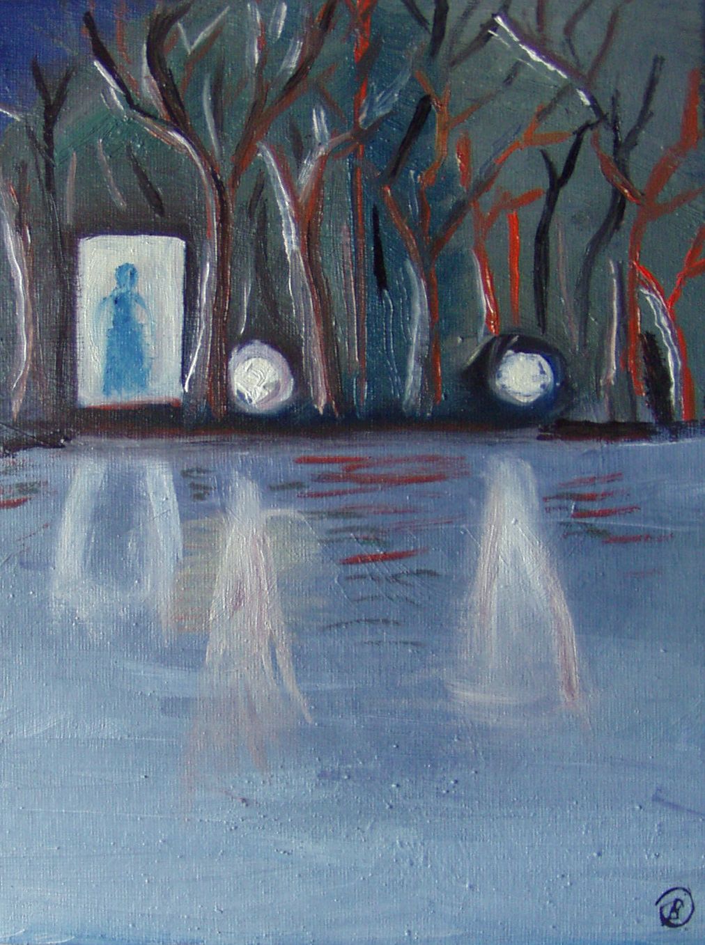 E l'associazione tra la foresta e il nodo dei capelli e l'interpretare la figura nella luce come quella di una bambina con il suo camicino bianco. E' vero qui qualcosa si scioglie nonostante il rimanere sospesi, non sapendo se la casa sia la riva o l'acqua.