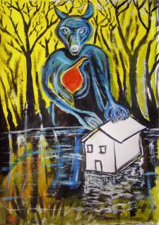 In effetti, se ben ci penso nella mia opera c'è sempre un ritorno della metamorfosi (a parte qualche pausa e divagazione) animale-uomo. Ciò che varia spesso è solo il modo con cui li dipingo, la tecnica