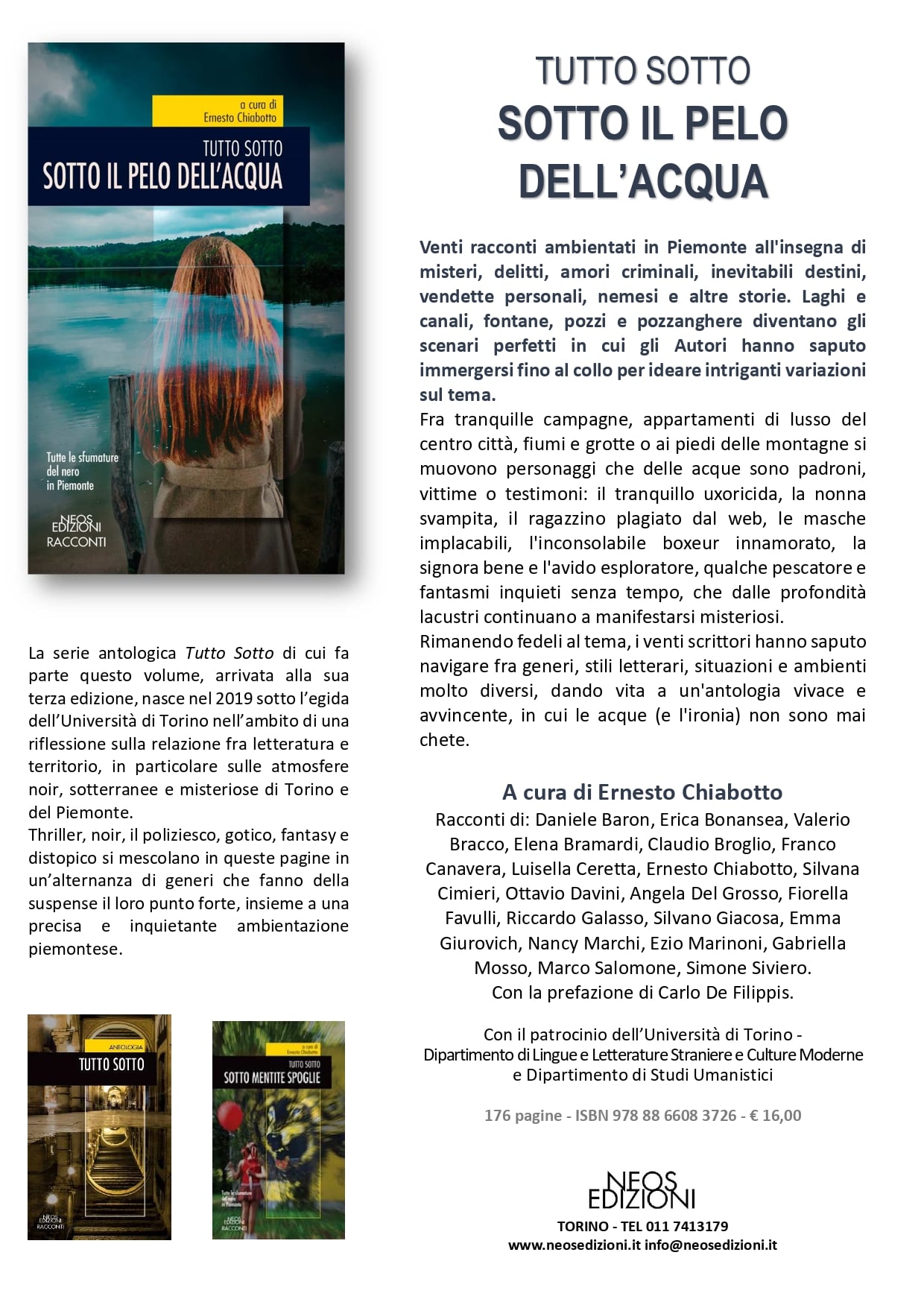 Da poco uscito per le edizioni Neos di Torino SOTTO IL PELO DELL’ACQUA. Tra i venti racconti noir di questa antologia c’è anche il mio PESCA MIRACOLOSA.