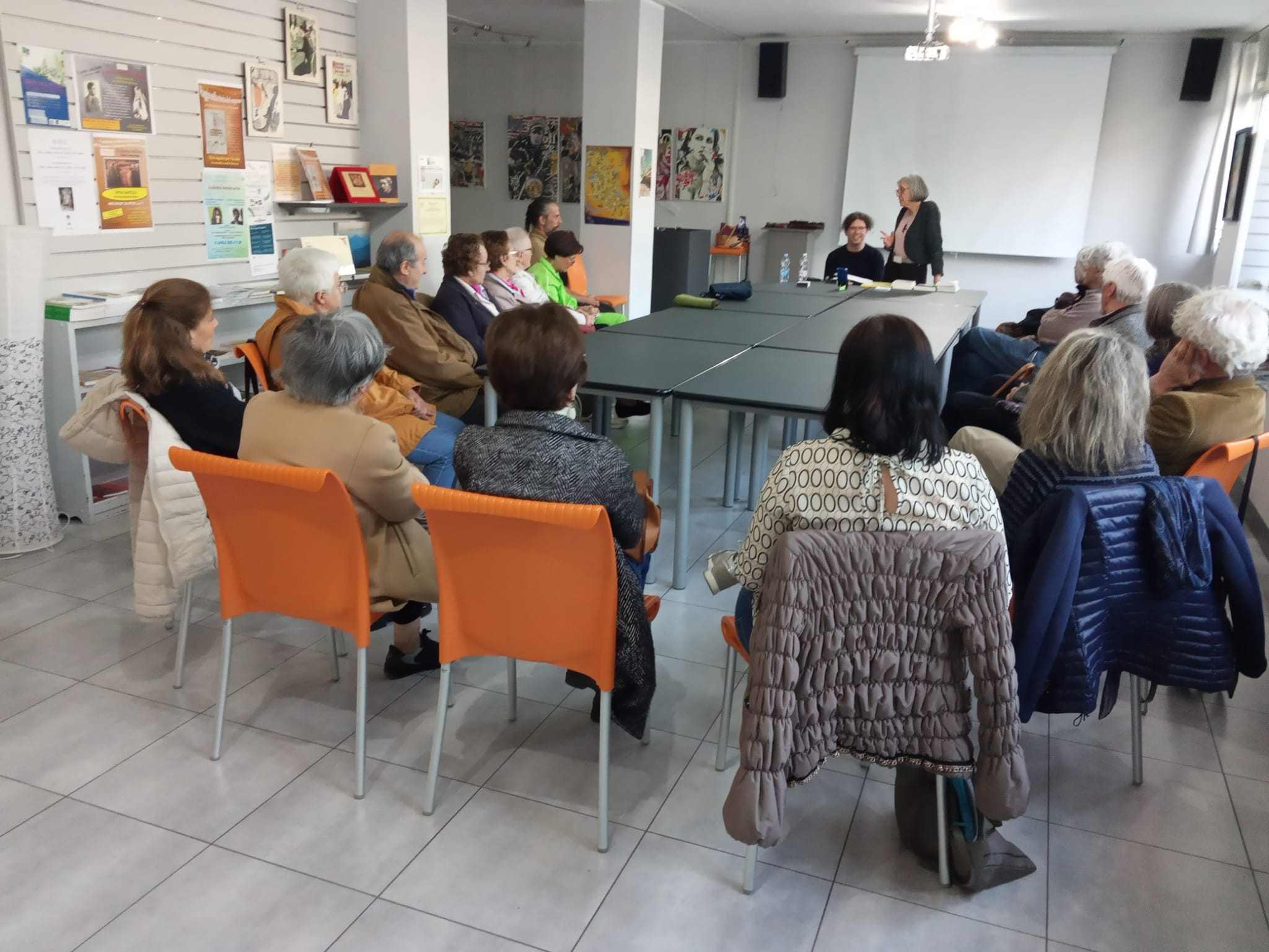 Immagini dall’incontro sull’esistenzialismo e su Jean-Paul Sartre di mercoledì 5 aprile a Spazio culturale piemontese un numeroso pubblico attento. Ringrazio Angela Delgrosso per la bella opportunità che mi ha dato e per l’introduzione. Il suo spazio culturale è prezioso e spicca nell’offerta culturale locale per varietà e interesse di temi. Un’iniziativa rara e lodevole. Complimenti Angela! E sono felice di aver contribuito, spero bene, questa volta parlando del mio Maestro.