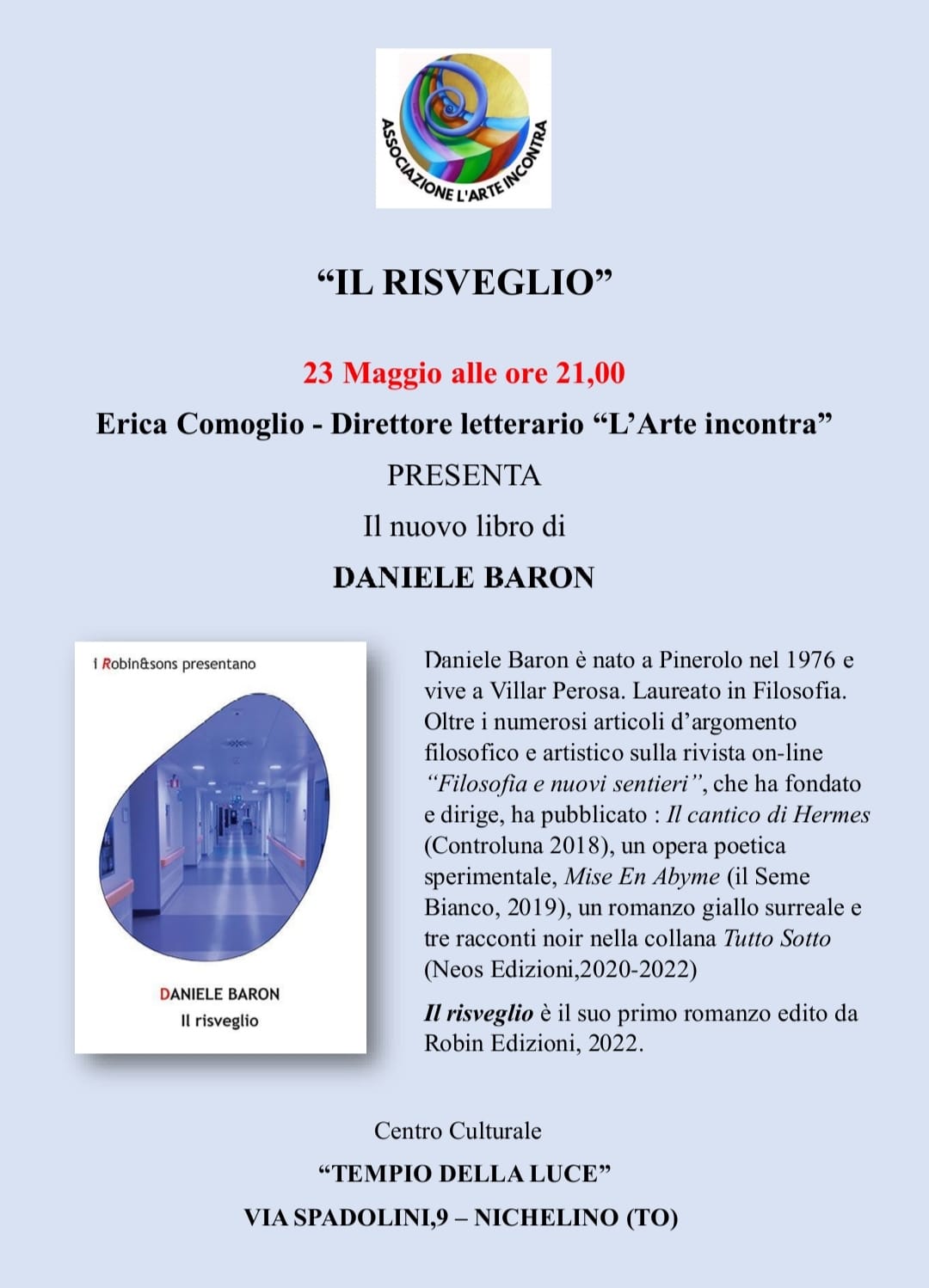 Martedì 23 maggio ore 21.00 a Nichelino presso il centro culturale “Tempio della Luce” ci sarà la presentazione de IL RISVEGLIO con Erica Comoglio.