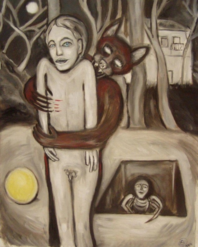 Un gioco innocente diventa una corsa inesorabile verso l’abisso, come l’avanzare di un temporale in una soleggiata giornata estiva. Preferiva ignorare i motivi che lo avevano spinto fin lì, al margine della foresta. L’angoscia rivelava la metamorfosi vicina: un abbraccio ancestrale, di cui non conosceva né principio né fine, che lo avrebbe trascinato verso il basso. La corruzione come fine dell’innocenza è l’unico desiderio che è insieme maledetto e necessario. Scosso dai brividi, per un momento volle tornare indietro, tornare a casa, tra i guanciali di sogni, fermare il tempo all’istante in cui aveva visto il viso di sua madre sorridergli radioso – ma i graffi sulla pelle, ma il freddo, ma quella lacerazione, lo riportavano in quel regno stregato e malvagio, lo spingevano a procedere, desiderando perfino i vantaggi di essere un insetto che suscita ribrezzo. E la luna gli accerezzava il viso, mentre il nero ordito del suo destino, come la tela invisibile di un ragno, lo imprigionava per sempre.