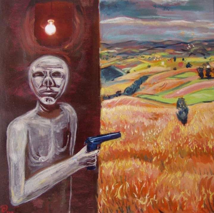 Il veggente, mista su tela, 50 x 50 cm, anno 2012