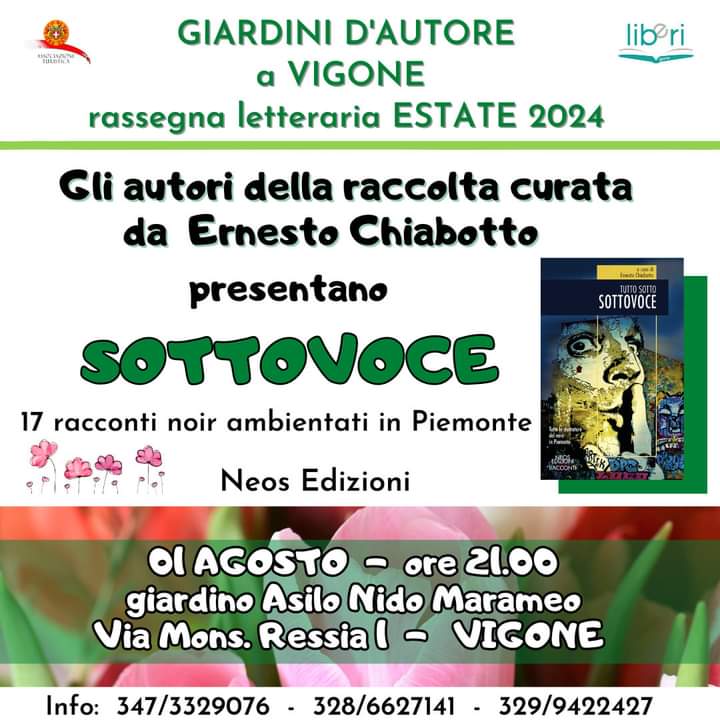 Presentazione dell’antologia Sottovoce giovedì 1 agosto ore 21.00 a Vigone. Vi aspettiamo numerosi!