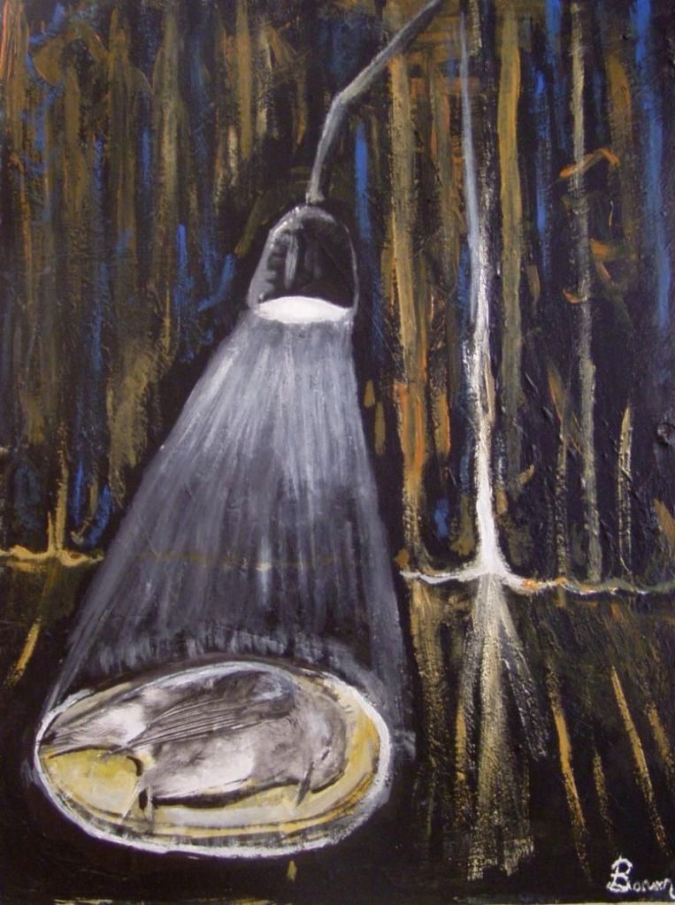 Nella solitudine del proscenio gli occhi si chiudevano come un sipario sulla luce abbagliante dei suoi sogni e delle sue visioni, riusciva a focalizzare solo i pensieri più estremi in quel buio, la platea era un animale che brontolava acquattato in attesa di qualche cosa, un unico indistinto essere dotato di centinaia di teste che faceva l’agguato ad ogni sua mossa o fremito. E lui rimase immobile a lungo, in silenzio, per un istante che durò un’eternità, per misurare quell’attesa a occhi chiusi, non sapendo più se sarebbe stato in grado di risvegliarsi o se avrebbe dormito per sempre, se si all’inizio o alla fine del dramma. E pensò: “Questo è il punto di vista più alto, quello a cui tendiamo durante l’intera recita della vita!”.