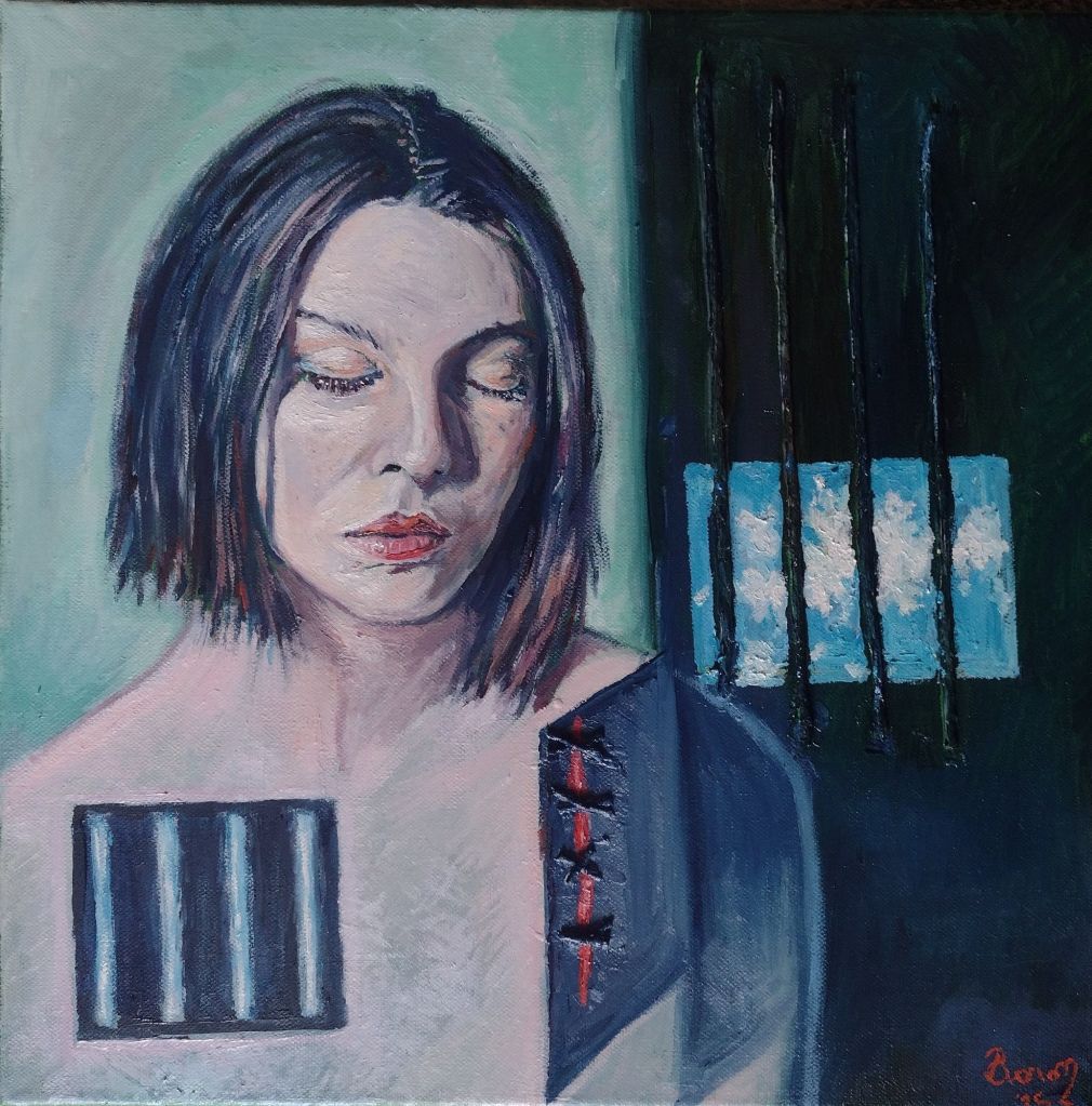 Studio per figura I, 42x 59 cm, matite su cartaConoscenza (Studio per figura II), matite su carta, 42 x 59 cmSospensione (Studio per figura III), matite su carta da spolvero, 50 x 70 cmScintilla d’Infinito, 29,7×42 cm, olio su cartaSilenzio, 40×40 cm, olio su tela La ferita dell’oltre, olio e spago su tela, 40×40 cmLa pelle, mista su tela, 40×50 cmLascia ch’io pianga, olio su tela, 25 x 30 cmGuerra, olio su tela, 50 x 50 cmErrore 404, olio e collage su tela, 30 x 40 cmTramonto, olio su tela, 30 x 40 cmSolo, olio su tela, 30 x 40 cmLimbo, olio e collage su tela, 40 x 40 cmStudio, matite e matita carboncino su carta A solo, olio su tela, 25 x 30 cm